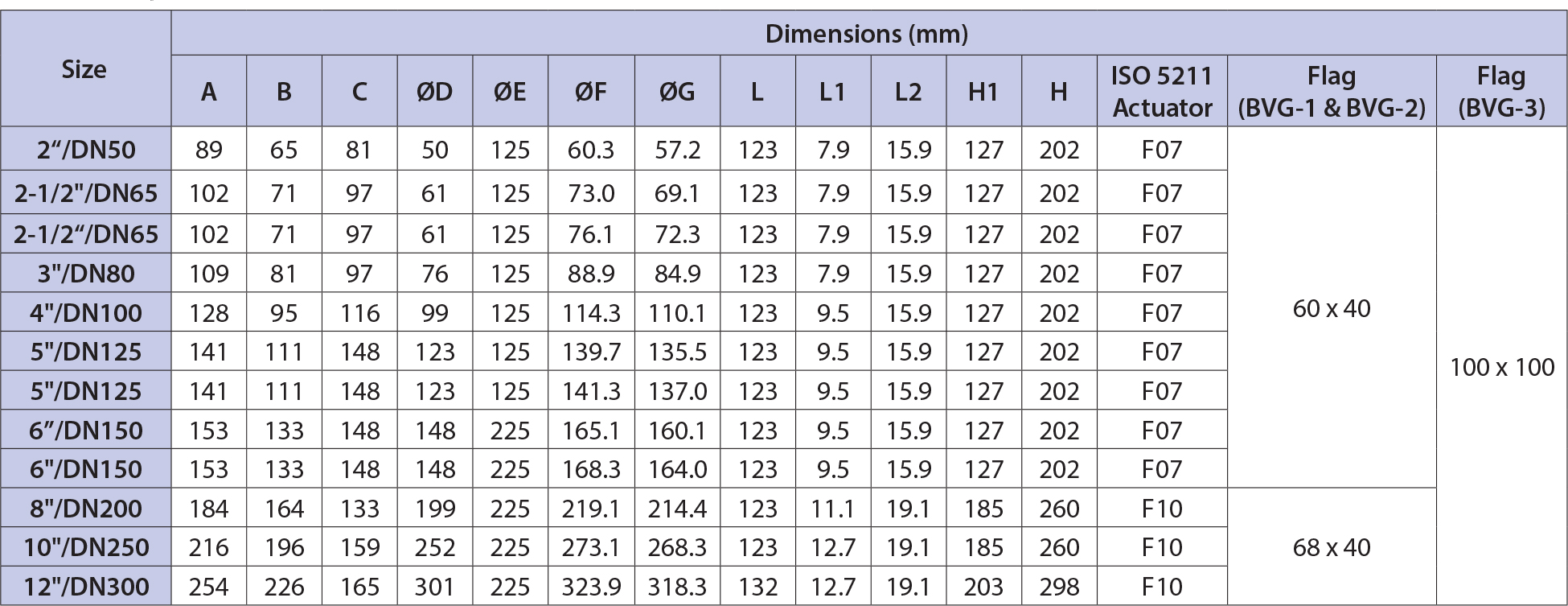 2”/DN50, 2-1/2” /DN65, 3”/DN80, 4”/DN100, 5”/DN125, 6”/DN150, 8”/DN200, 10”/DN250 & 12”/DN300