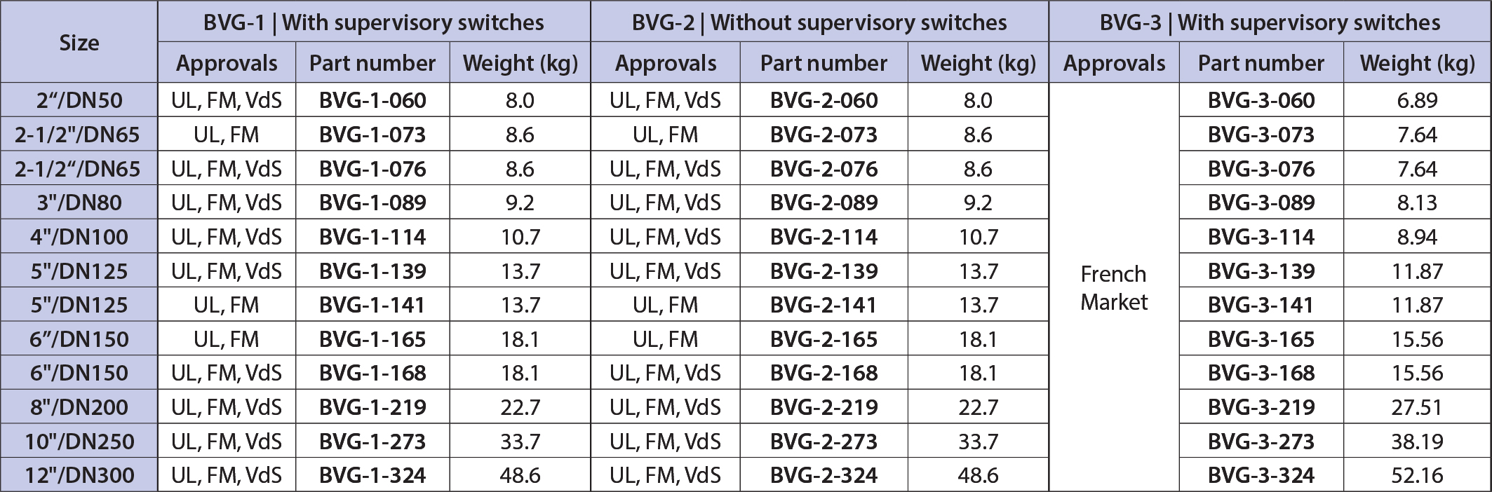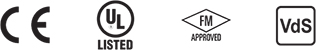 * CE, UL, FM & VdS (BVG-1 & BVG-2), CE & French market (BVG-3)