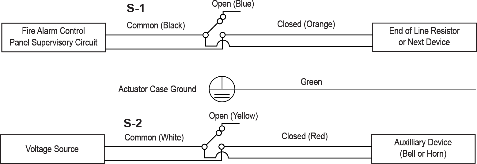 - Conduit and electrical connections to the supervisory/ auxiliary switches must be in accordance with the requirements of the Authority Having Jurisdiction.