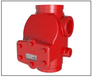 - Valve housing tapped for inlet and outlet pressure gauges, alarm devices, and system main drain.