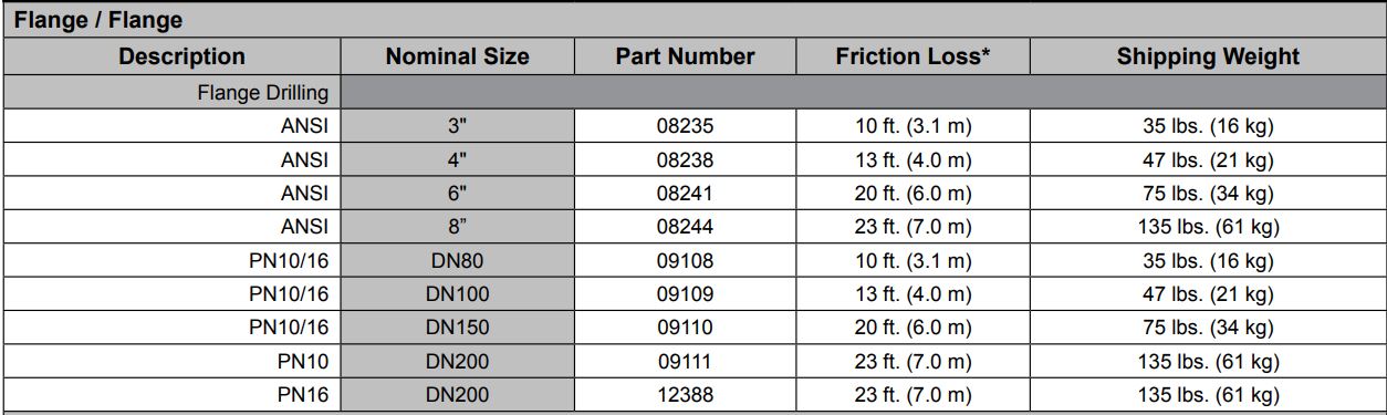 * Expressed in equivalent length of Schedule 40 pipe based on Hazen & Williams formula: C = 120.