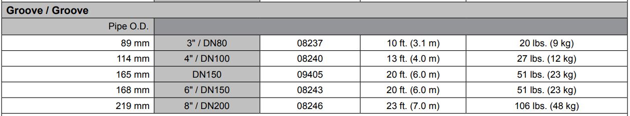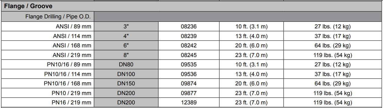 VdS: DN80 - G 4960086, DN100 - G 4960087, DN150 - G 4960088, DN200 - G 4960089 - 250 psi (17.2 bar) MWP