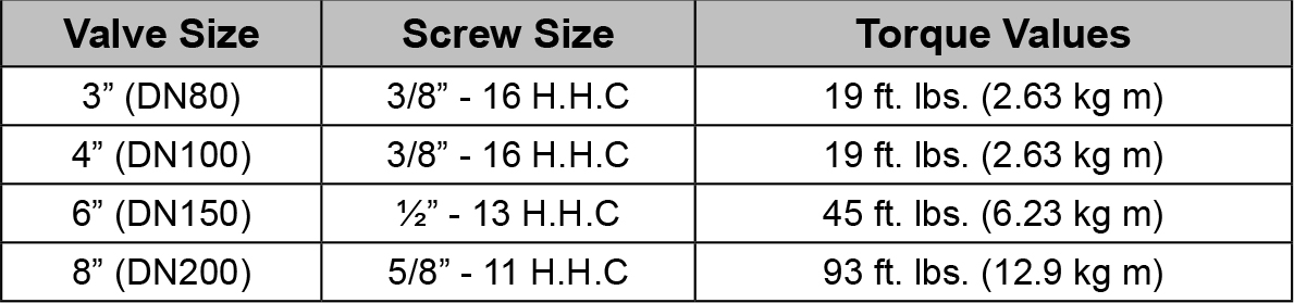 Table 2: Torque Values for Model J-1 Alarm Valve Cover Screws