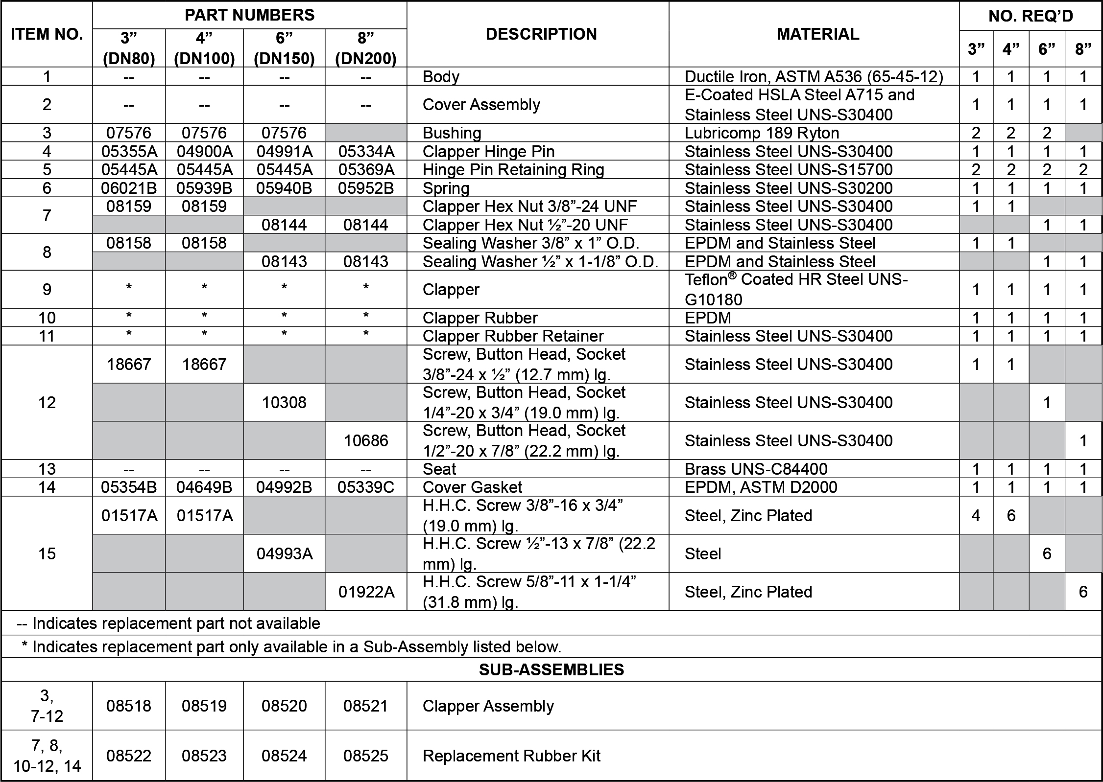 Check Valve Trim Chart.)
