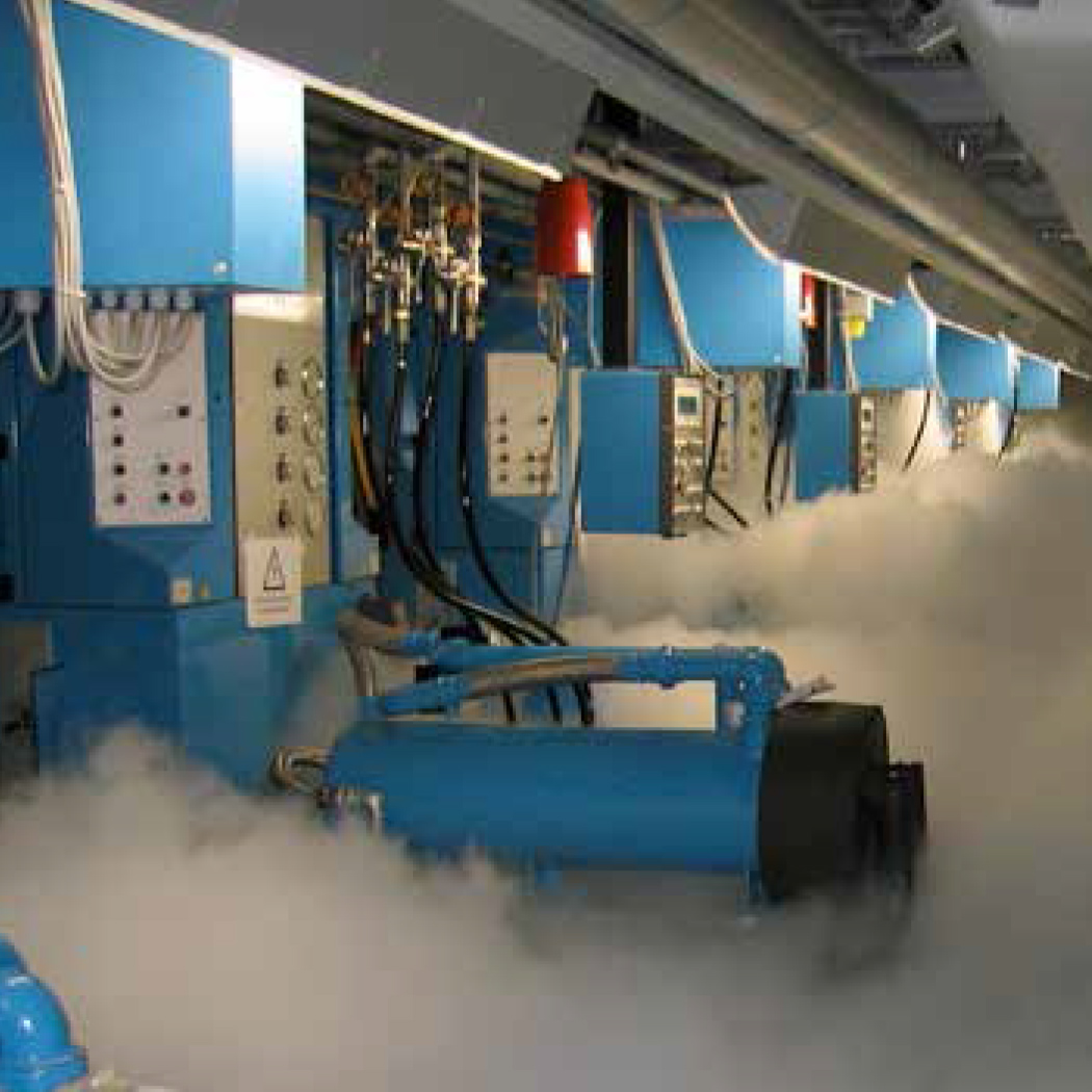 Carbon dioxide extinguishing systems, due to their special extinguishing agent properties, feature advantages over other inert gas extinguishing systems: Even freestanding objects in a room can be protected. The liquefied carbon dioxide forms a thick aerosol cloud in the flooding zone. Special local application nozzles put the extinguishing agent precisely at the object to be protected.