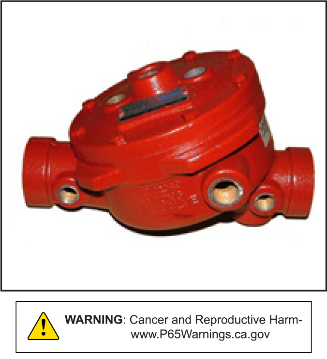 4. Hydrostatic Test: The Model F-1 Deluge Valve is manufactured and listed for use at a maximum Water Working Pressure of 250 PSI (17.2 bar). The valve is factory tested at 500 PSI (34.5 bar). Model F-1 Deluge Valves may be hydrostatically tested at 300 PSI (20.7 bar) and/or 50 PSI (3.5 bar) above the normal Water Working Pressure, for limited periods of time (two hours), for the purpose of acceptance by the Authority Having Jurisdiction. If air testing is required, do not exceed 60 PSI (4.2 bar) air pressure.