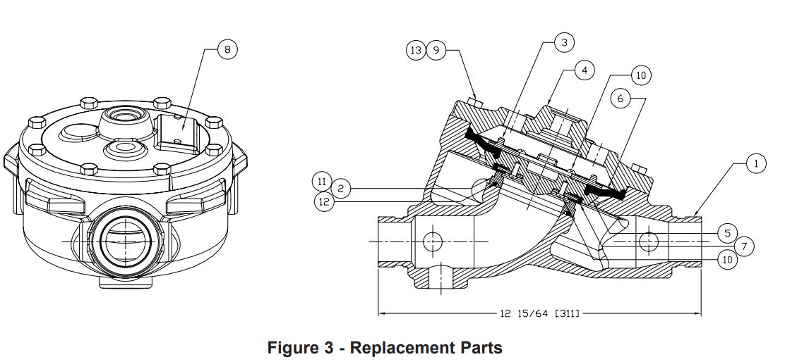 8. To replace the seat rubber assembly (7), clapper assembly (3, 5, 6, 7, & 10) must be removed from the valve. Remove the circle