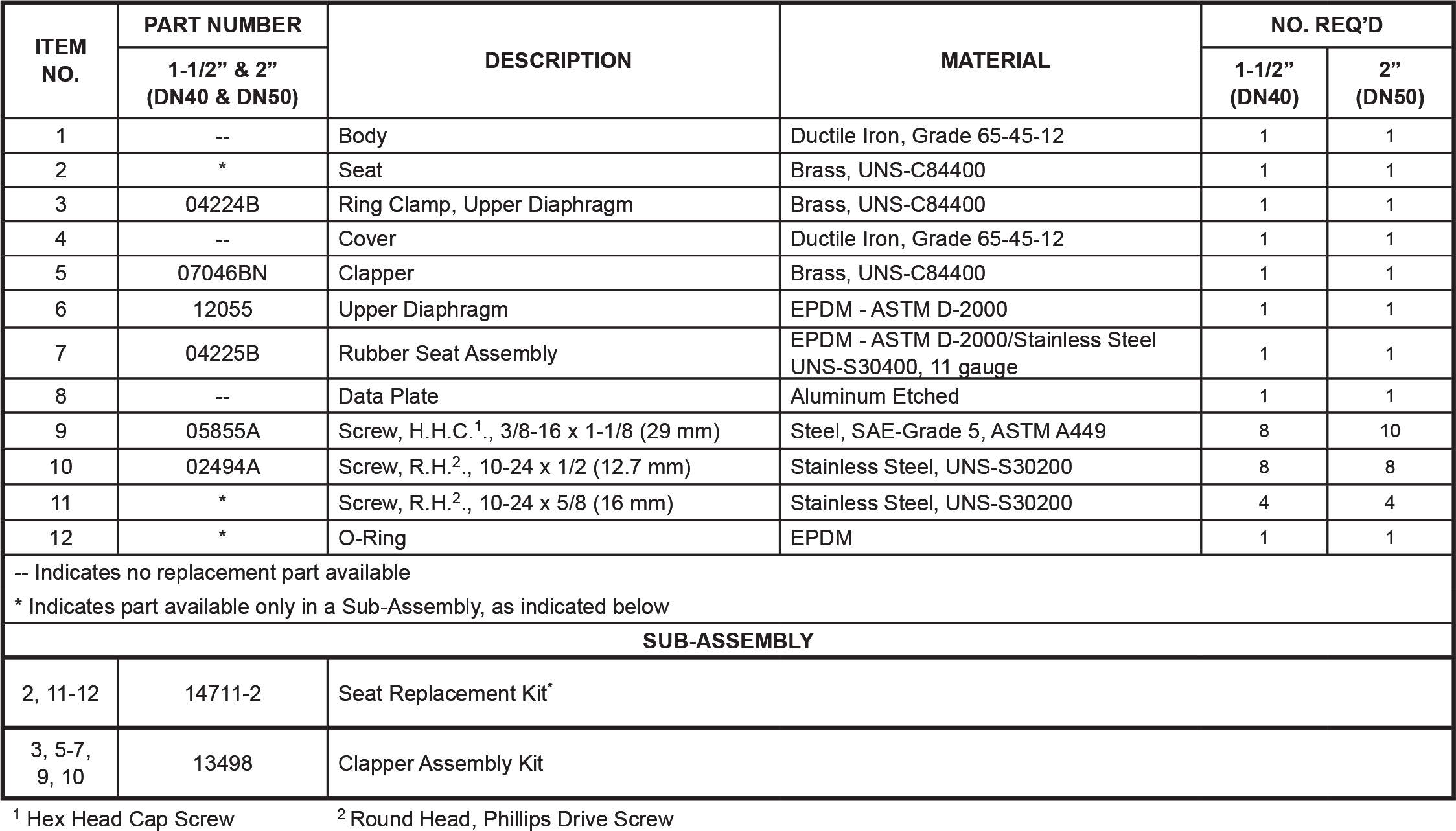NOTE: PRIOR TO INSTALLING A NEW CLAPPER RUBBER (6) OR SEAT RUBBER ASSEMBLY (7), MAKE CERTAIN THAT ALL SURFACES ARE CLEAN AND FREE OF FOREIGN MATTER. THE PLATED SEAT (2) MUST BE SMOOTH AND FREE OF NICKS, BURRS OR INDENTATIONS.