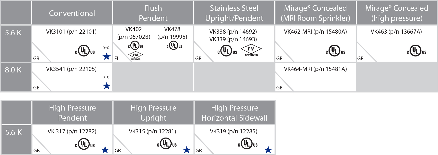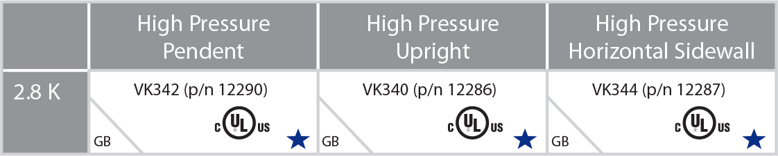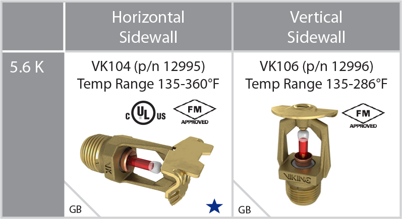 - Select 8.0 and 11.2 K-factor sprinklers are available with ½ NPT thread size FOR REPLACEMENT ONLY.