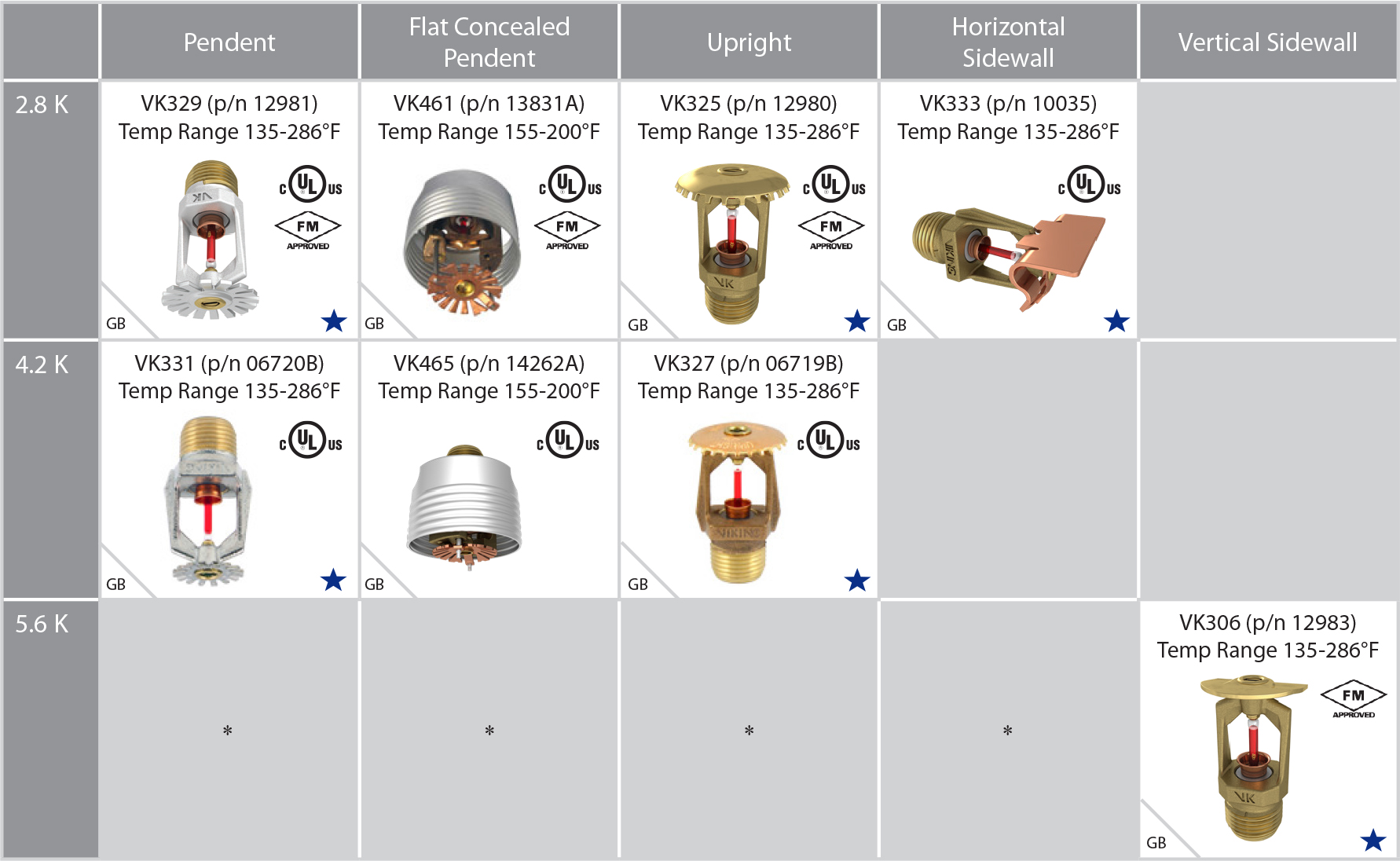 * Please refer to the “Quick Response” table on the preceding page for additional sprinkler options