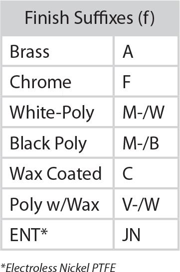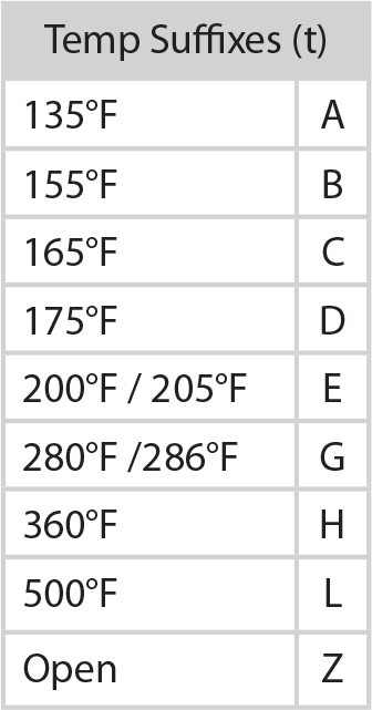 To order, add desired finish (f) and temperature (t) suffix to end of base part number