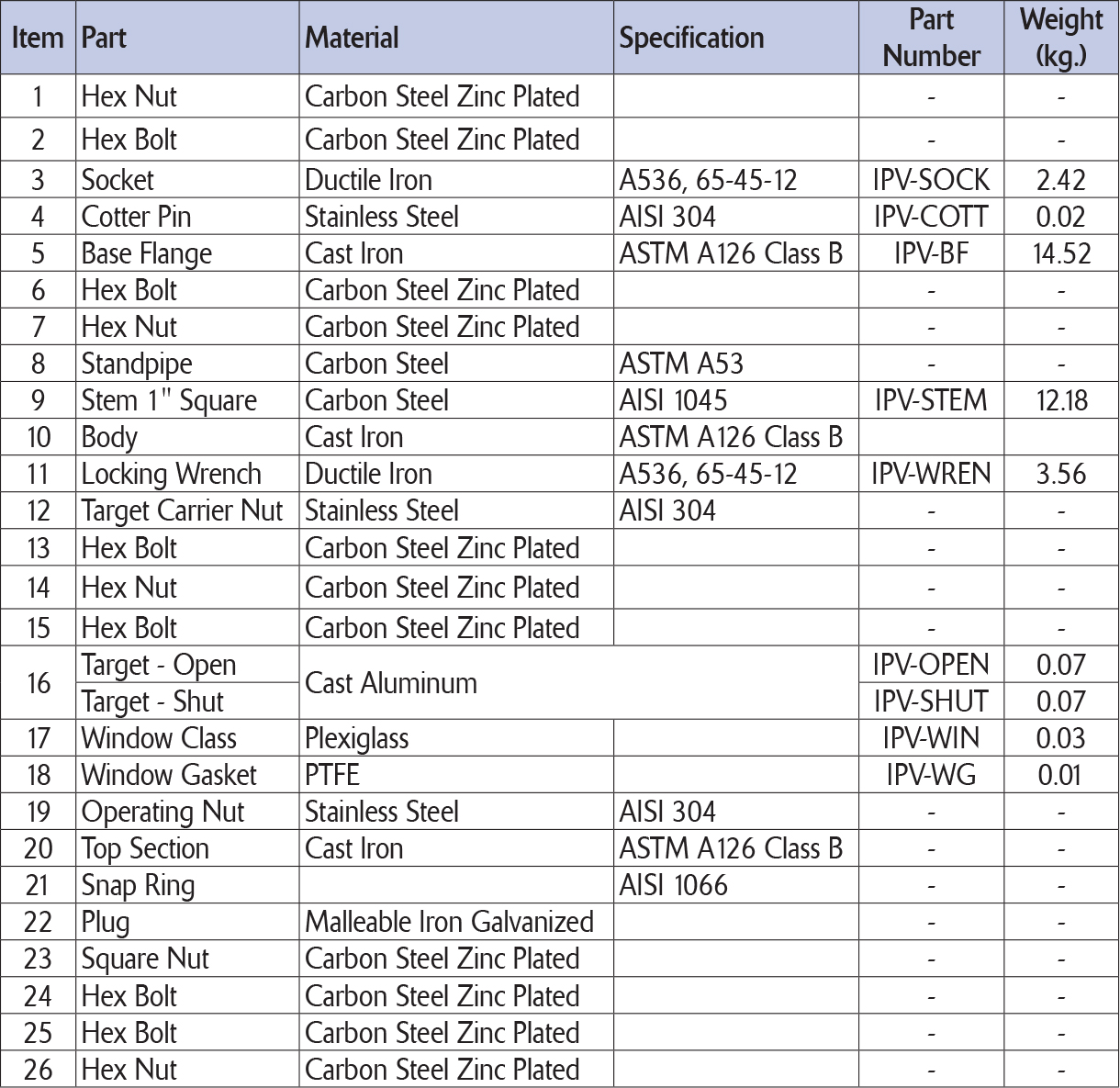 Take off the Locking Wrench (11), loosen the two Hex bolt (24) and Square Nut (23) and remove the Top Section (20), operating nut assembly and the Square Stem (9) as well as the socket (3). Slide off the Body (10) from the Standpipe (8) by loosening the two Hex Bolts (6) and Hex Nuts (7), slide off the Standpipe (8) from the Base Flange (5).